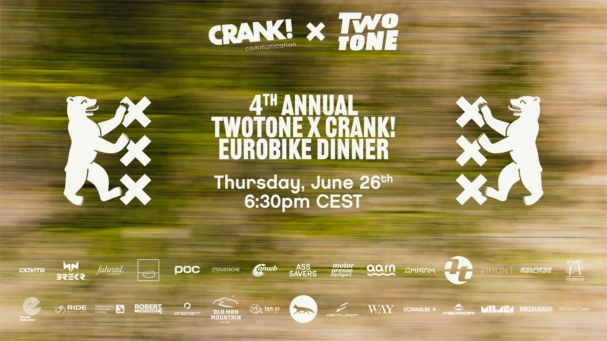 Announcing the 4th Annual CRANK! x Twotone Eurobike Dinner June 26th