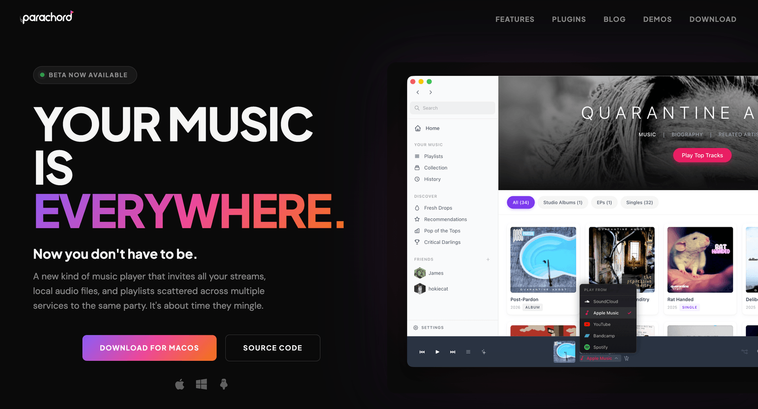 Parachord: new kind of music player that invites all your streams, local audio files, and playlists scattered across multiple services to the same party.
